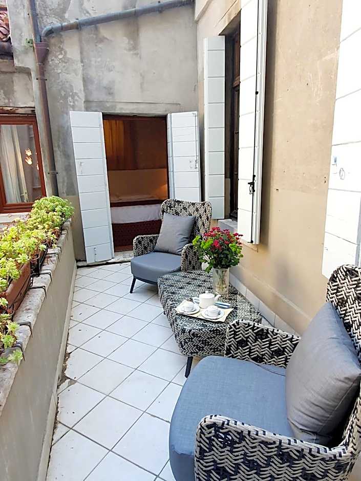 Double Room with Terrace Courtyard View is 172 square feet and includes a double bed 131-150 width plus terrace, desk, and ironing set.