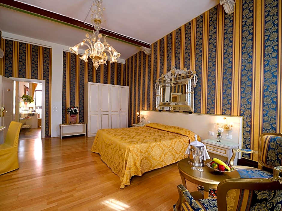 Double Superior Room with Canal View is 226 square feet and includes either a double bed 131-150 width or a king-size bed 150-183 width plus desk, satellite tv , ironing set, and slippers.